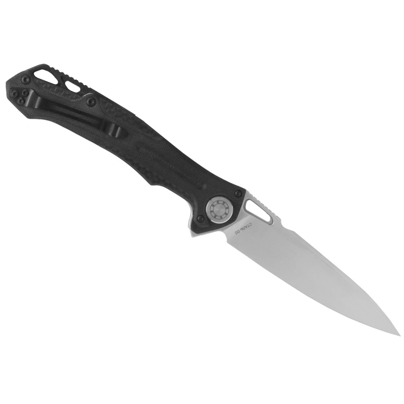 Современный дизайн ножа в техно-стиле, заданный элегантным клинком, продолжает рукоять. Она образована двухслойными текстурированными накладками: нижний слой - карбон, верхний слой – стеклопластик G10, материала, который отличается долговечностью, устойчив к механическим повреждениям и температурным воздействиям. Замок типа liner-lock с запирающей пластиной толщиной 2 мм обеспечивает надежную фиксацию клинка. Обратите внимание, что рукоять немного удлинена для комфортной работы в перчатках. Дополнительную жесткость и прочность рукояти придает проставка-спейсер из G10 черного цвета, в задней части которой имеется двойное темлячное отверстие, что способствует дополнительным возможностям по креплению темляков, страховочных шнуров или тренчиков. Благодаря установленной упругой клипсе «Фантом» удобно носить в кармане, а при необходимости легко извлечь. Его вполне можно отнести к городским «тактикам», но в то же время он отлично послужит как EDC, нож «на каждый день» и особенно как походно-туристический, в поездке и вылазке на природу. Выбор только за вами.