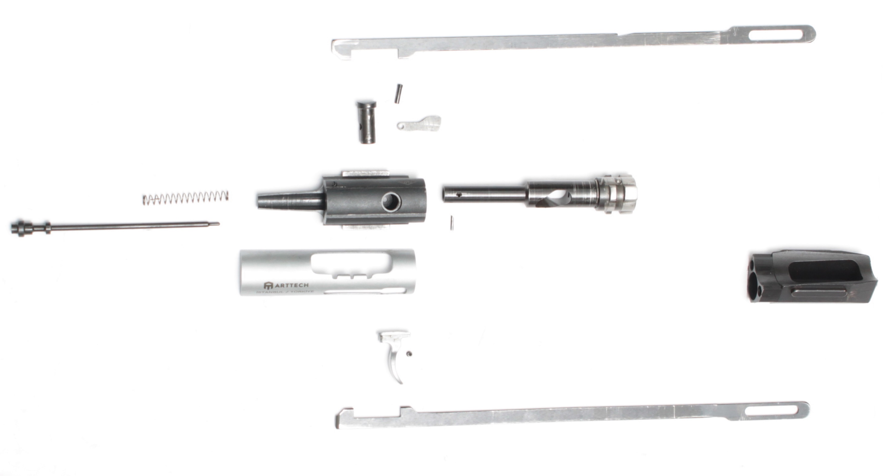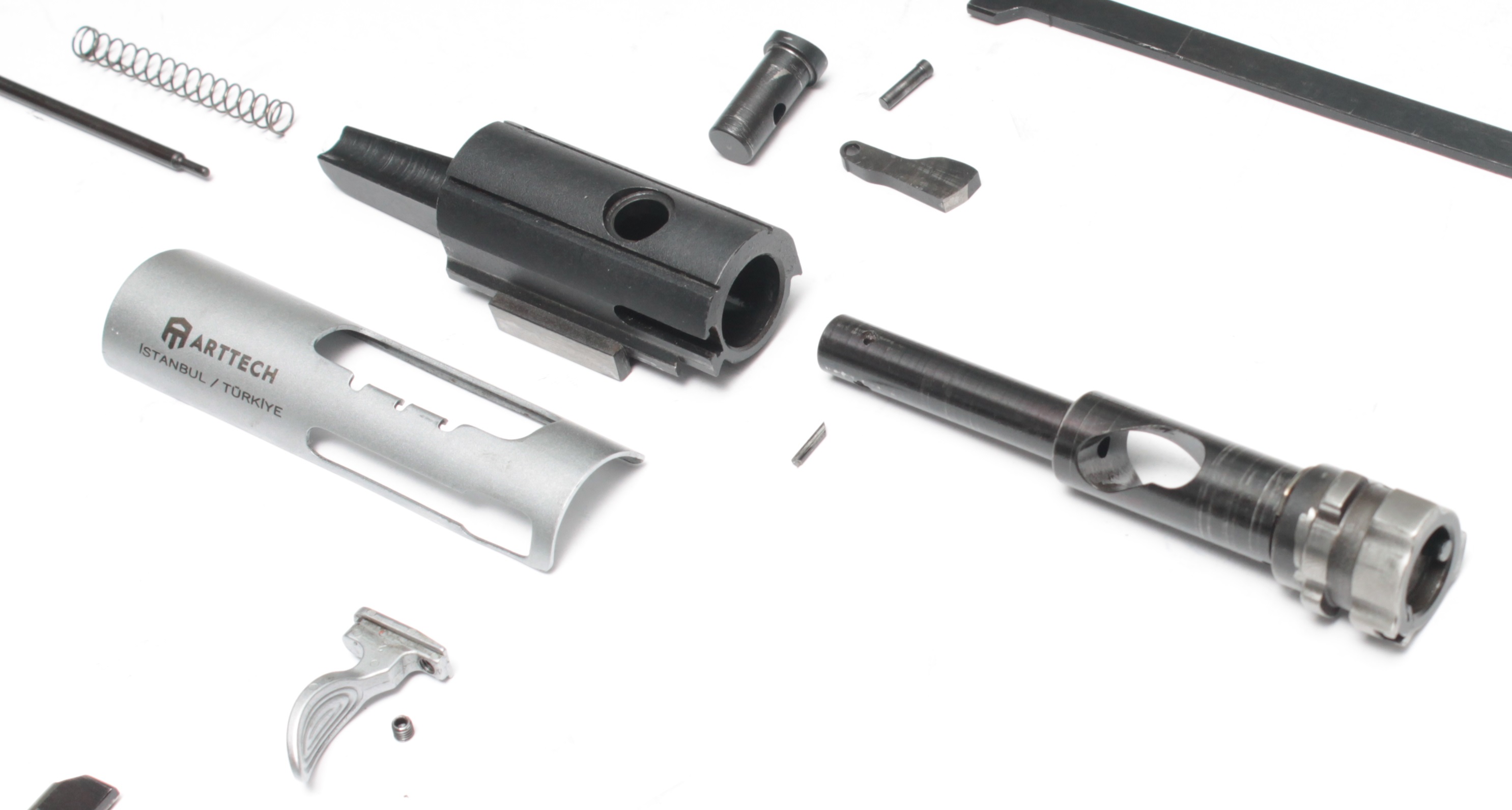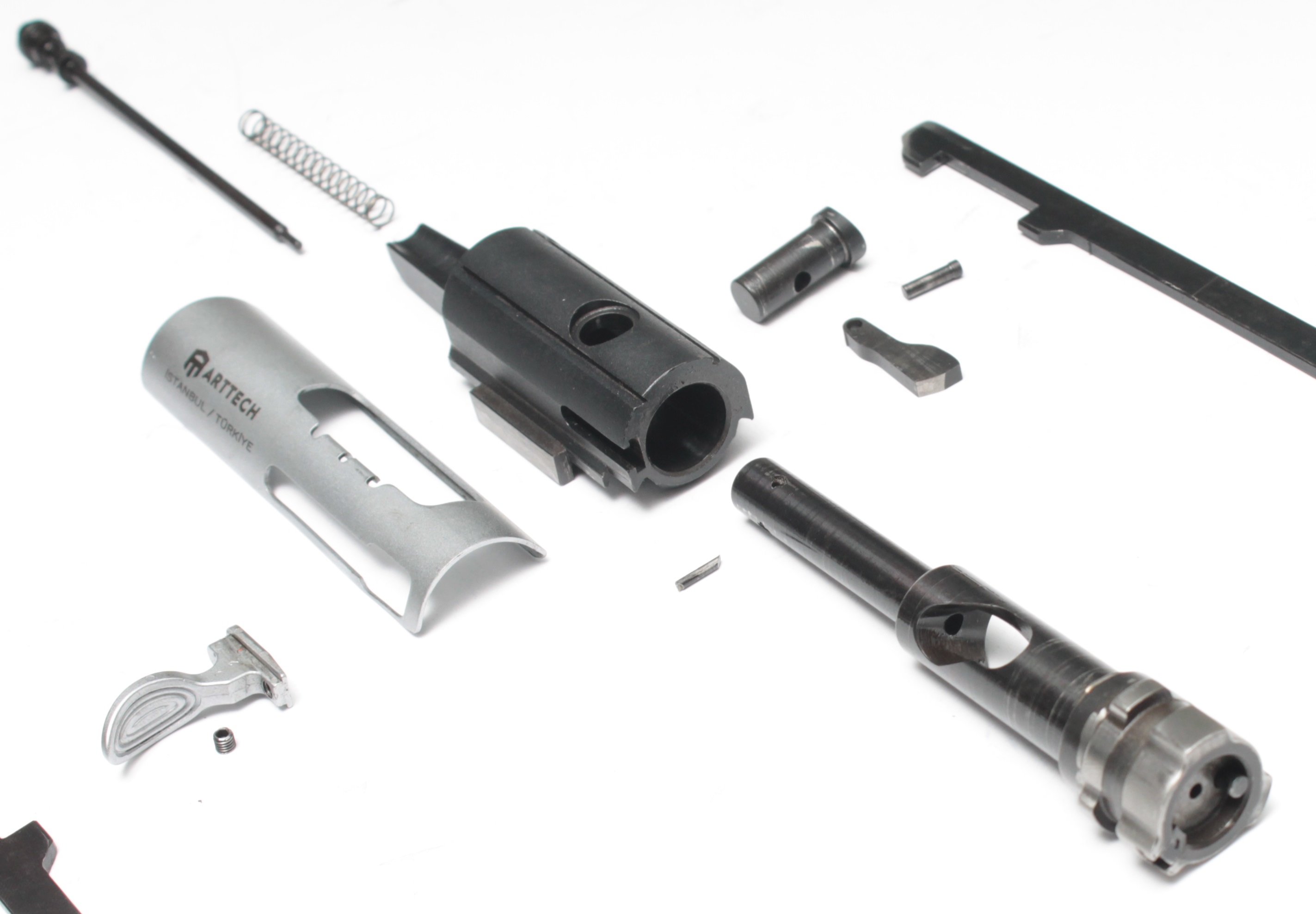 Затвор изготовлен на станках с ЧПУ, подвергнут термической обработке и хромируется для повышения ресурса работы